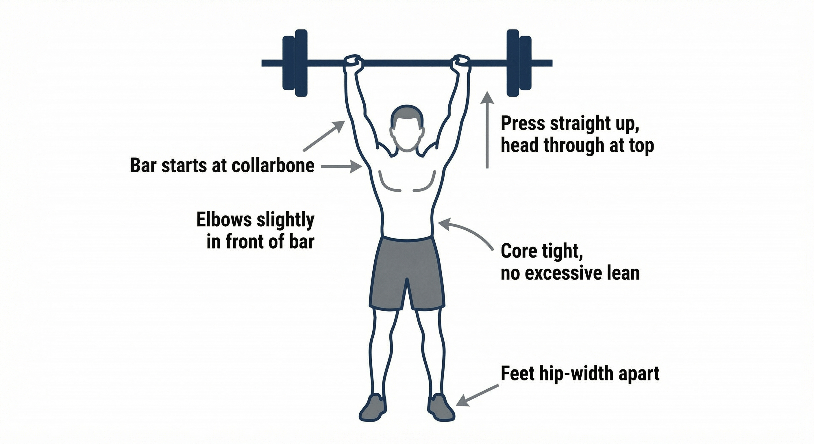 | A1. Barbell Overhead Press | 3×8 | 4×6 | 4×5 | 2-3 min | 2-1-1 |